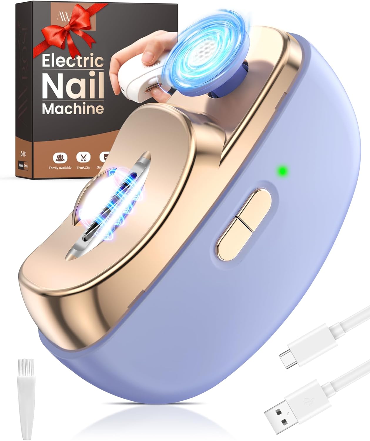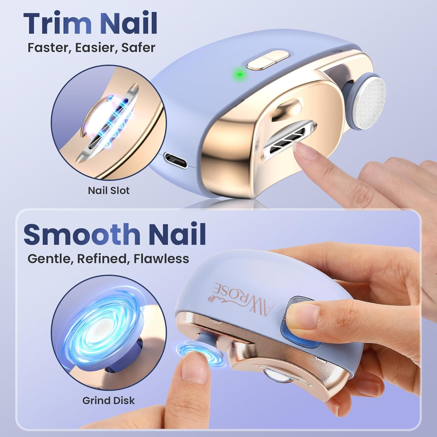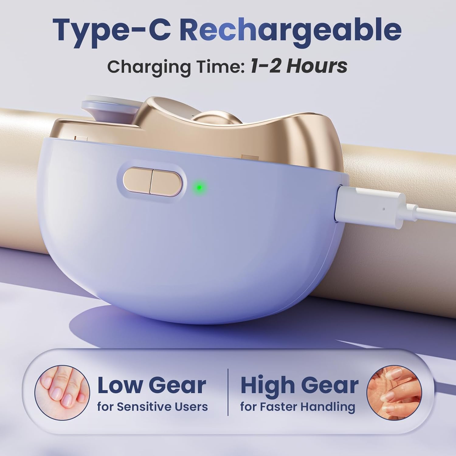 RECHARGEABLE PORTABLE DESIGN: USB Portable Rechargeable, the electric nail clipper has two speeds, short press the first low speed, short press the second high speed, long press (to turn on and off the night light).